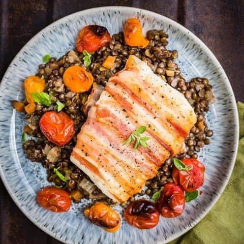 This delicious pancetta-wrapped cod with lentils is special enough for a dinner party yet easy enough for a weekday meal.