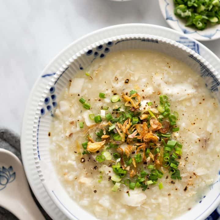 Vietnamese fish congee (rice porridge) is so flavorful and comforting. Making it in a pressure cooker is super easy and cuts down cooking time significantly. A steamy and delicious bowl of fish congee will be ready in just 30 minutes.