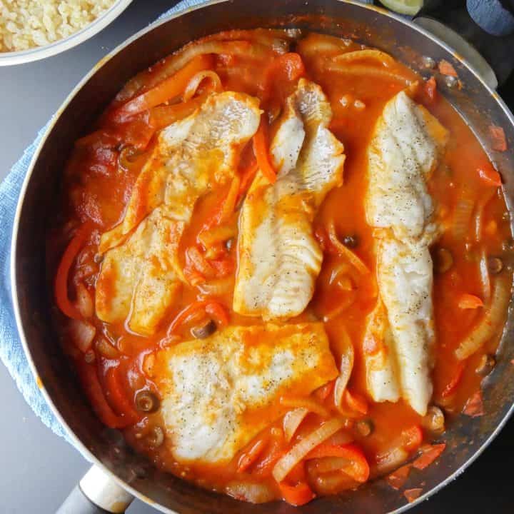 Wild caught cod in a spicy Mexican tomato sauce with olives and jalapeños!