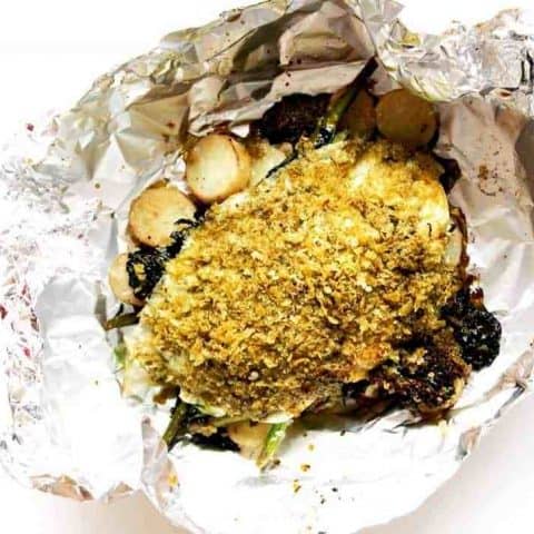 A super tasty, super easy weeknight meal. Lemon sole is paired with pesto, parmesan potatoes, asparagus and broccoli