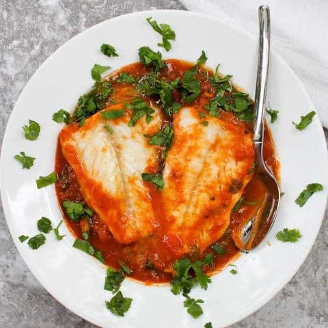 Pan Seared Fish with Tamarind Sauce is an easy recipe that gives you a tasty flaky fish with a spicy crust in a tangy sauce. It is low in calories and carbs, high in protein and healthy fats!