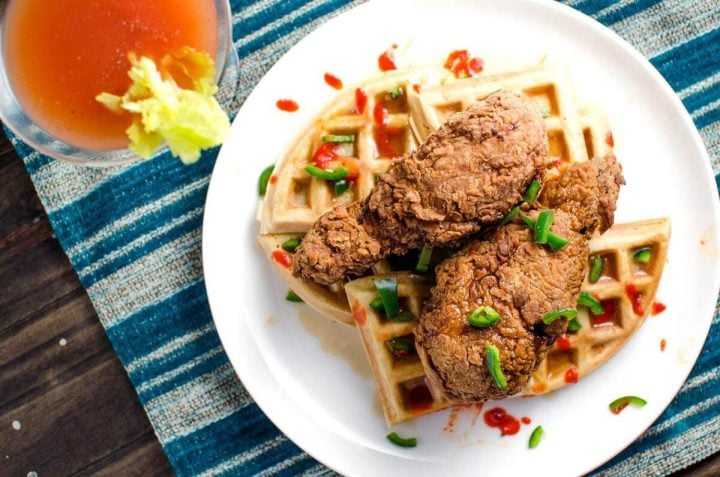Flavorful, crispy Fried Chicken, marinated with all the flavors of Bloody Mary and Scotch, fried to perfection and then drizzled with maple Scotch syrup!