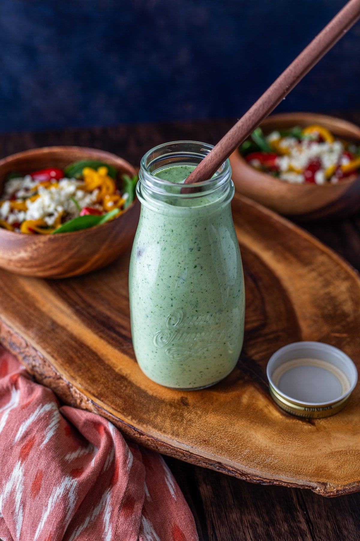 Lastly, I am now cooking for two most of the time. I usually cut the recipe in half. Creamy salad dressings don’t keep as long as vinaigrettes. On photo day, however, I had a couple of menus lined up that could use it, so this is the full recipe. It makes about 12 fluid ounces.