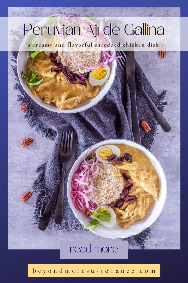 My introduction to ají de gallina happened at my brother and sister-in-love’s house in Newport Beach, California. Josselin is Peruvian, and she introduced me to Peruvian cuisine long before our first trip to Cuzco and the Andes Mountains in 2017. She taught me to make ají de gallina from her Peruvian cookbook in Spanish. It was love at first bite!