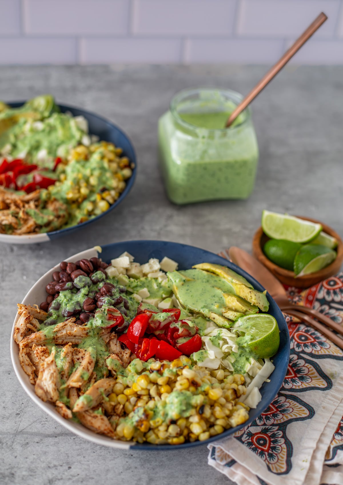 - dressing – The ingredient that ties all the other ingredients together is the cilantro jalapeño ranch. It is super quick and easy to make – all ingredients go into a blender! Perhaps you have a brand of dressing that is similar?
