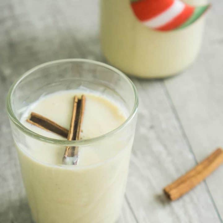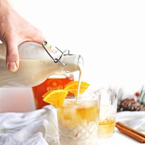 Spiced orange vegan coquito! A dairy free and egg free way to enjoy Puerto Rican coconut eggnog. Make this your new holiday cocktail!