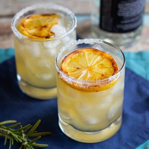 These Grilled Mezcal Margaritas are equal parts sweet, tart, and smoky. Honey syrup lends a pleasant sweetness, the grilled lemon juice is tart and complex, and the mezcal adds a boozy smokiness.