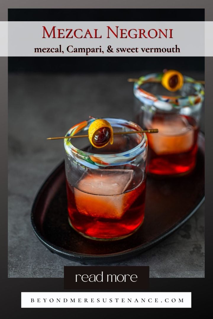 There is no shortage of recipes for classic cocktails. My aim is to bring new cocktail recipes with an interesting twist (or two). I hope you’ll give this mezcal negroni a try! Let me know if you like it (or not) in the Comments section below!