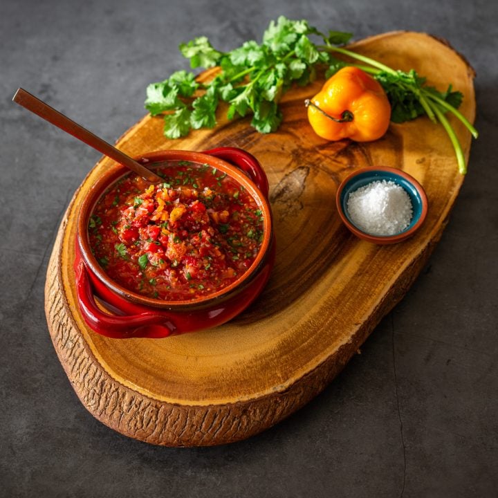 I am a big fan of Peruvian sauces! As you can see, I had 2 sauces on photo day – my Peruvian ají verde, and a rocoto sauce. I also like to serve anticuchos with salsa criolla or this Peruvian yellow sauce (with ají amarillo paste).