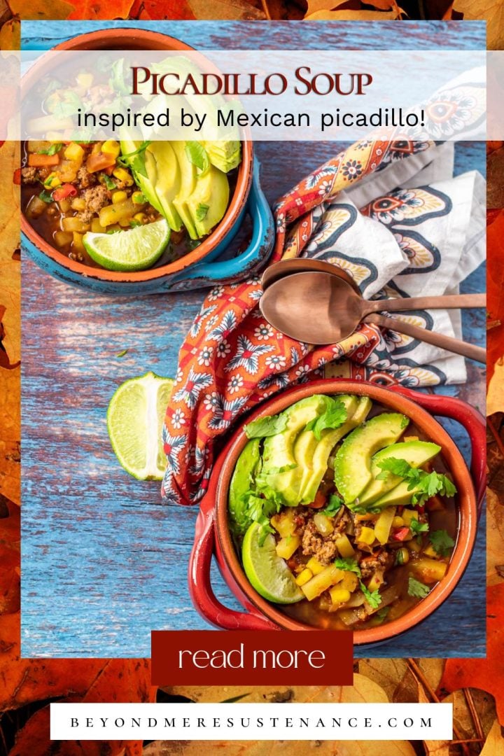 Inspired by Mexican Picadillo, this healthy Mexican Picadillo Soup features lean ground meat, healthy veggies, and Mexican herbs and spices. It’s gluten free and a perfect bowl of comfort on a chilly fall or winter evening. You can have it on the table in 30 to 45 minutes!