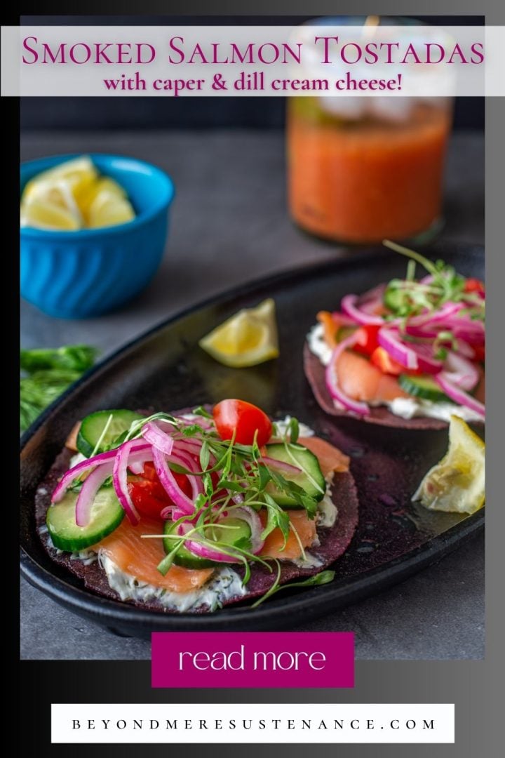 This tostada recipe is definitely a fusion of Mexican and a New York-style lox and bagels. Lox and bagels are a classic combination, especially popular in Jewish-American cuisine (and brunch menus everywhere!).