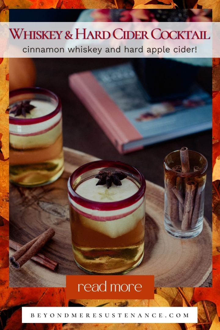 As promised, I said I would update you after my infused cinnamon whiskey was finished, and I made this whiskey and hard cider cocktail. It is fantastic! However, you don’t have to infuse the whiskey if that isn’t your thing. Go for a store bought infused whiskey!